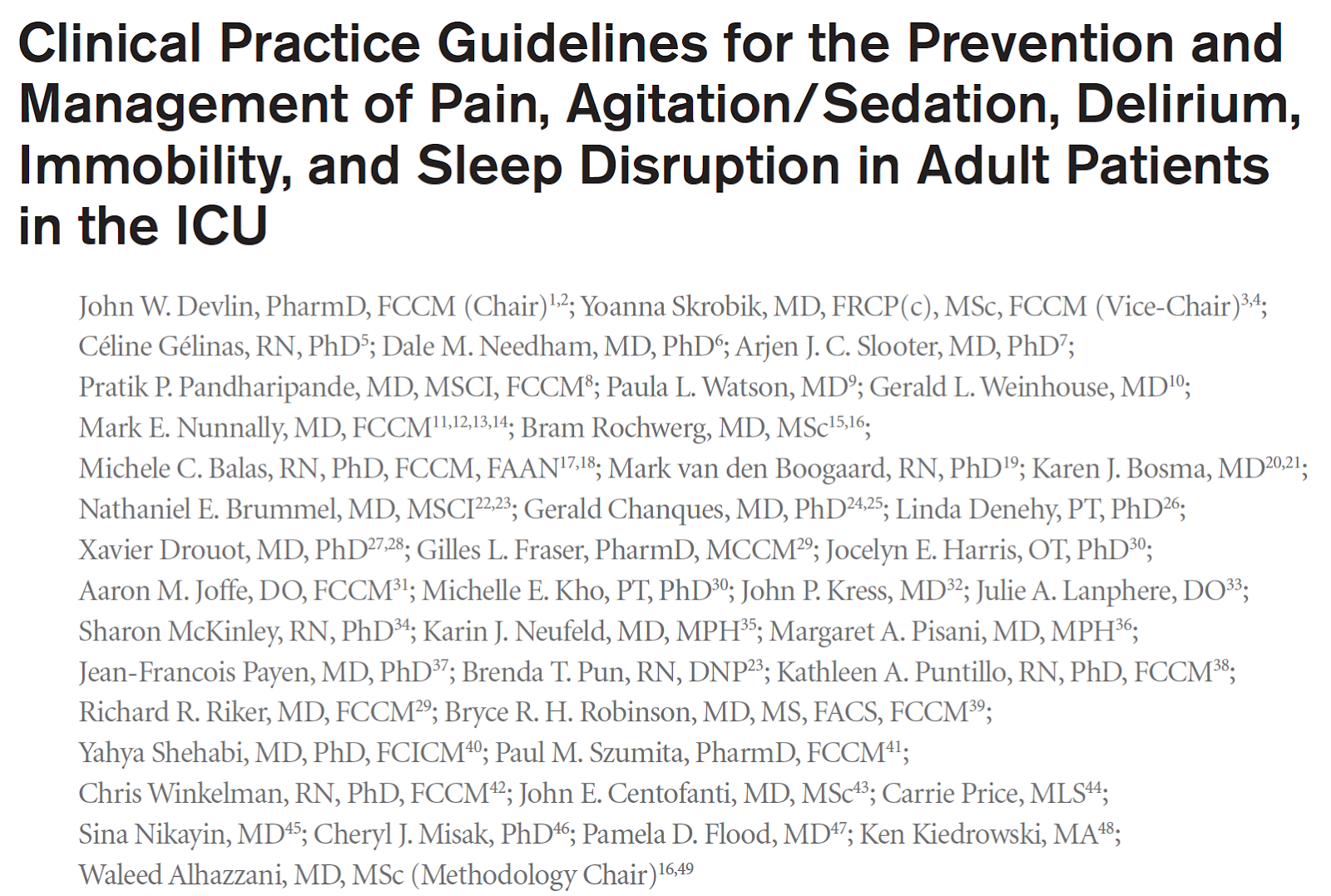 Devlin JW, Skrobik Y, Gélinas C, et al. Clinical practice guidelines for the prevention and management of pain, Agitation/Sedation, delirium, immobility, and sleep disruption in adult patients in the ICU.Crit Care Med 2018;46:e825–73.